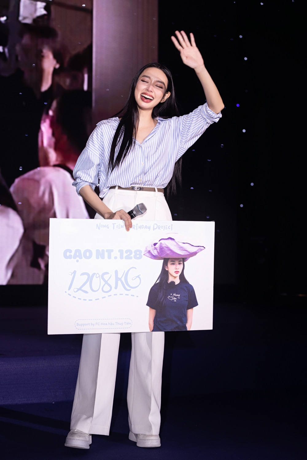 Hoa hậu Thùy Tiên cũng không quên gửi 20 suất học bổng dành tặng đến các bạn hiếu học. Để đáp lại tình cảm đó, fan cũng gửi tặng Thùy Tiên 1208 kg gạo (ngày 12/08 là sinh nhật của Thuỳ Tiên) để nàng hậu có thể thực hiện thêm nhiều dự án ý nghĩa.