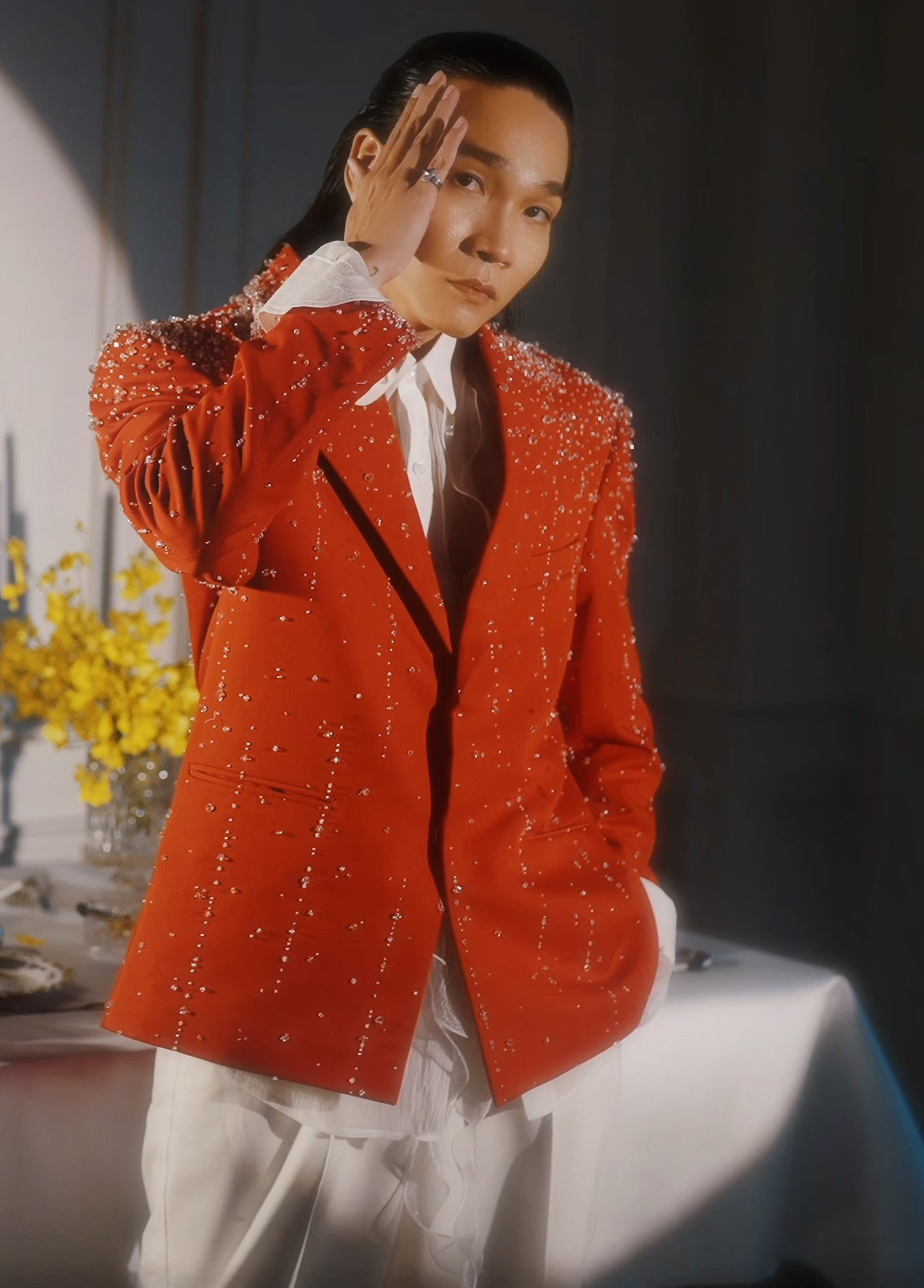 Khoác lên mình chiếc áo vét tone đỏ của mùa lễ hội cuối năm, Wowy khoe trọn vẻ lãng tử, lịch lãm với thần thái đĩnh đạc, đầy nổi bật. Dù hé lộ nhỏ giọt hình ảnh trên trang cá nhân với mái tóc dài khác lạ nhưng anh nhận được vô số lời khen từ khán giả về lần tái xuất thú vị này.