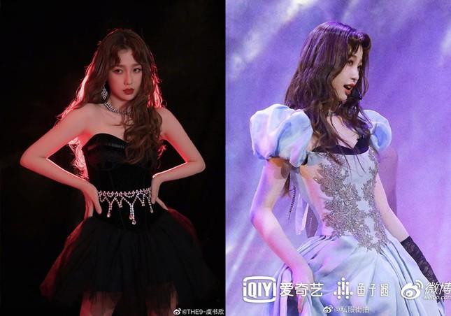 Một lần khác, Ngu Thư Hân rất tự tin với set đồ diễn 2 trong 1. Váy bồng công chúa mặc bên ngoài váy ngắn kiểu corset bên trong, giúp cô có thể biến hóa trên sân khấu trong nháy mắt.