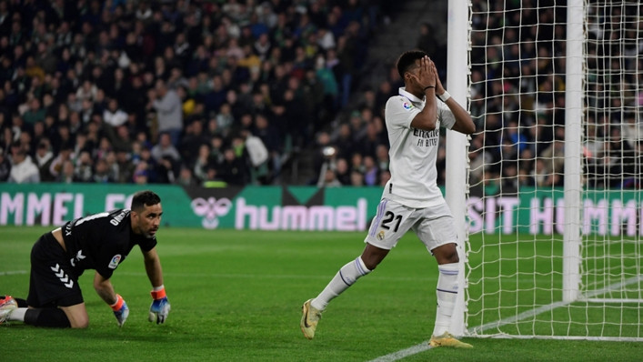 Trong hiệp 1, Real Madrid có một lần chọc thủng lưới Betis ở phút 12, sau cú đá phạt tuyệt đẹp của Benzema. Tuy nhiên, trọng tài đã tham khảo VAR quyết định hủy bàn thắng giao bóng đã chạm tay Rudiger. Real Madrid kết thúc hiệp 1 mà không ghi được bàn thắng nào.