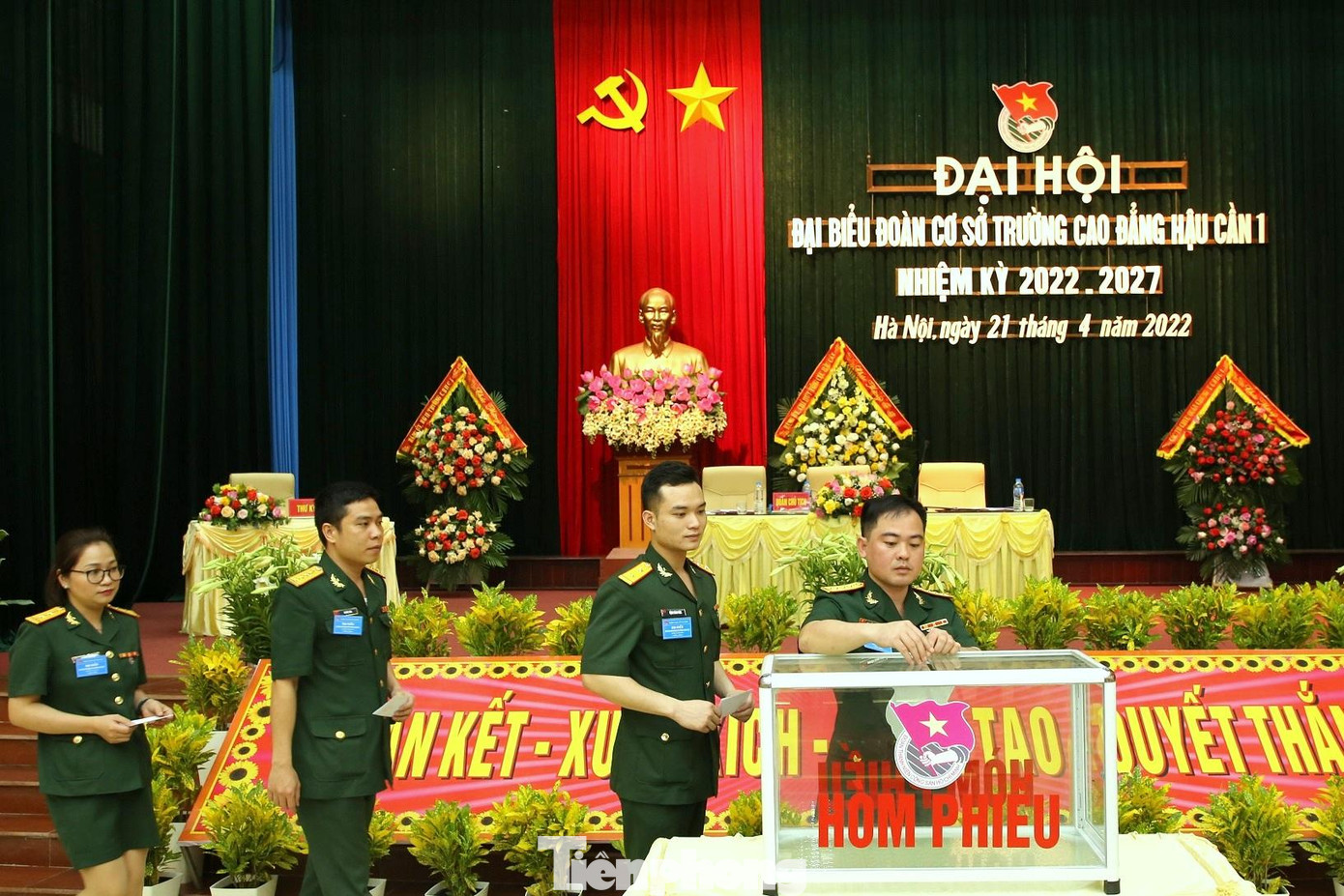 | Đoàn Chủ tịch đại hội bỏ phiếu bầu BCH Đoàn cơ sở Trường Cao đẳng Hậu cần 1, nhiệm kỳ 2022-2027 |