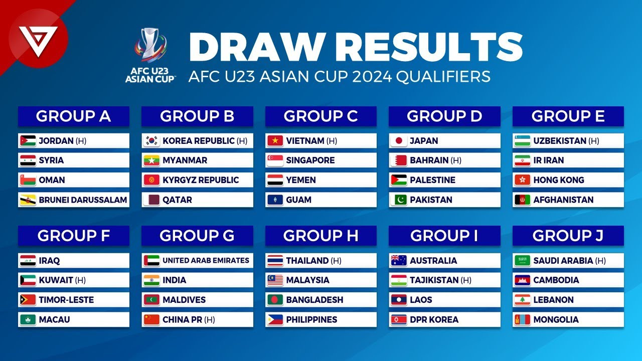 Vòng loại U23 châu Á 2024 thi đấu từ ngày 4/9 đến 12/9 tới, quyết định 11 tấm vé dự VCK U23 châu Á 2024 diễn ra từ ngày 15/4 đến 3/5/2024 tại Qatar. 3 đội đứng đầu VCK sẽ có vé dự Olympic 2024, trong khi thứ 4 chơi trận play-off với đại diện châu Phi tranh vé vớt.