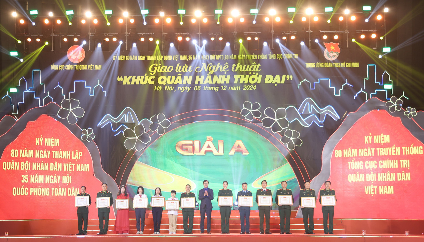 | Lãnh đạo Tổng cục Chính trị và Trung ương Đoàn trao thưởng 35 tập thể có thành tích xuất sắc trong tham gia, tổ chức hai cuộc thi. |