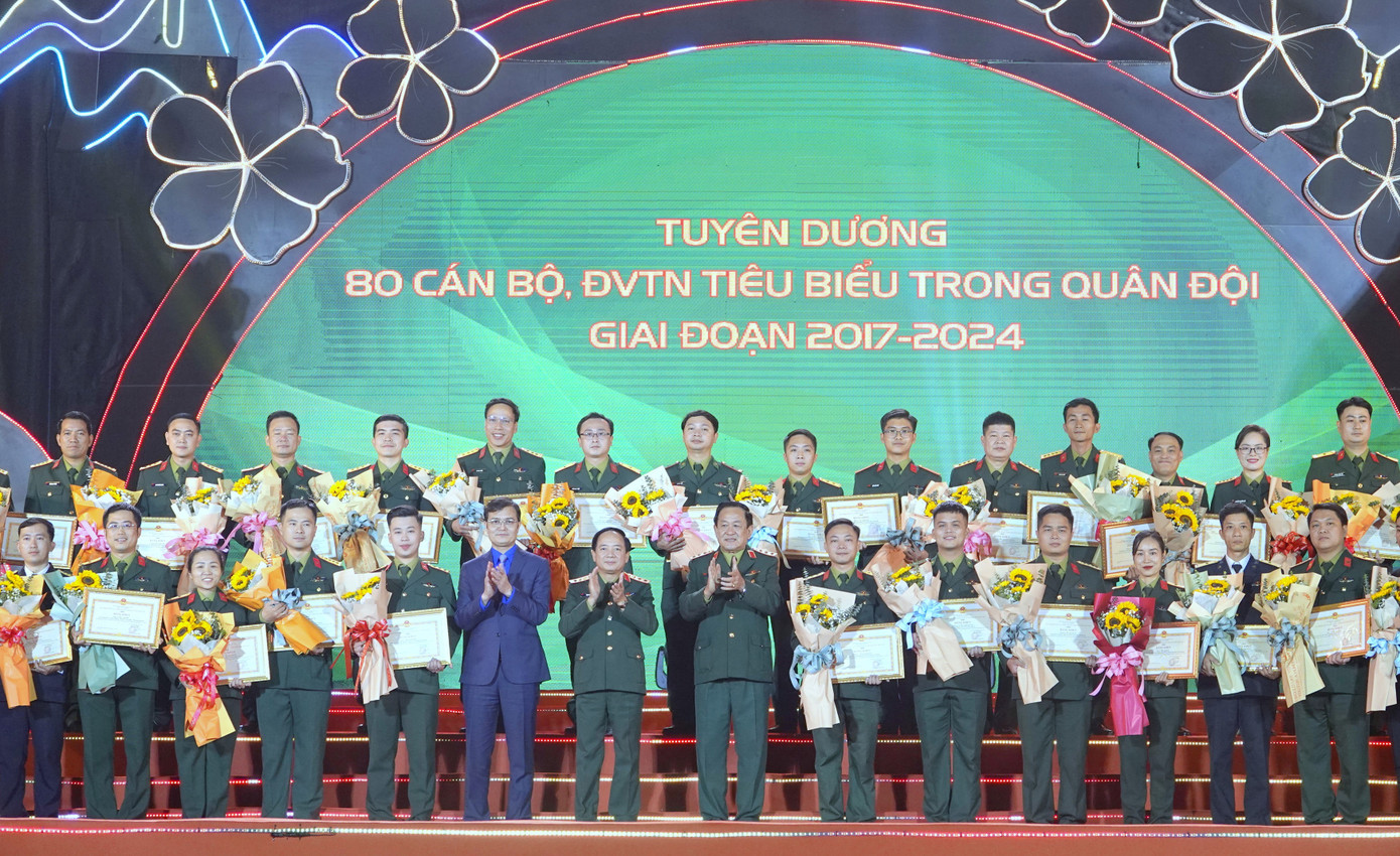 | Chủ nhiệm Tổng cục Chính trị QĐND Việt Nam Trịnh Văn Quyết, Thứ trưởng Bộ Quốc phòng Võ Minh Lương và Bí thư thứ nhất Trung ương Đoàn Bùi Quang Huy trao thưởng 80 cán bộ, đoàn viên thanh niên tiêu biểu trong hoạt động công tác Đoàn và phong trào thanh niên giai đoạn 2017-2024. |