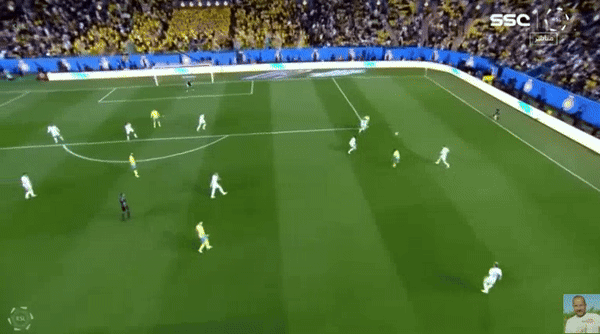 Thế trận sau đó diễn ra giằng co. Mãi tới phút 72, Ronaldo và đồng đội mới có bàn thứ 2. Tình huống này, Ronaldo là người khởi xướng. Anh chuyền ngang sang phải cho Al Ghannam. Tiền vệ của Al Nassr tung cú tạt chuẩn xác và Otavio di chuyển vào vòng cấm đánh đầu tung lưới.