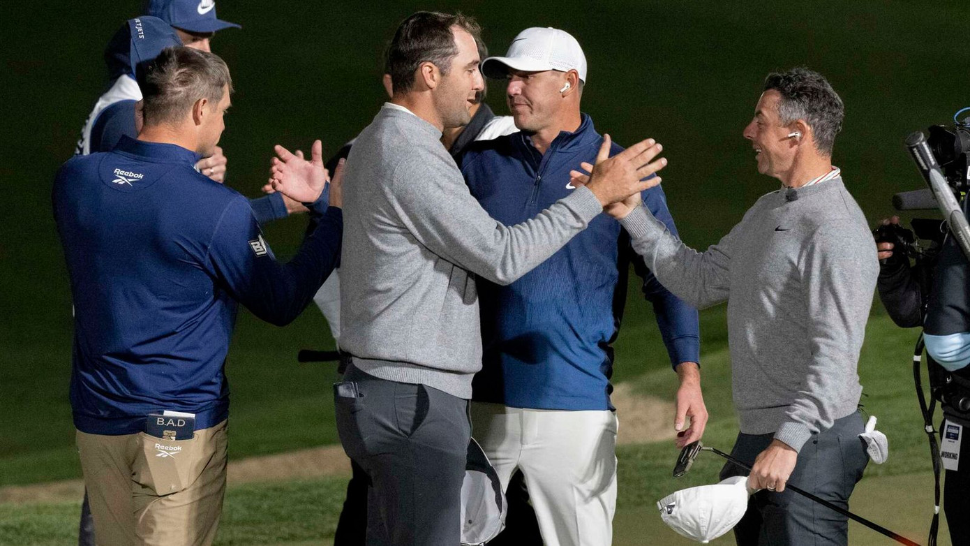 Sau ngày tranh tài đầy hấp dẫn, Rory McIlroy và Scottie Scheffler đã đánh bại các đối thủ đến từ LIV Golf Bryson DeChambeau và Brooks Koepka.