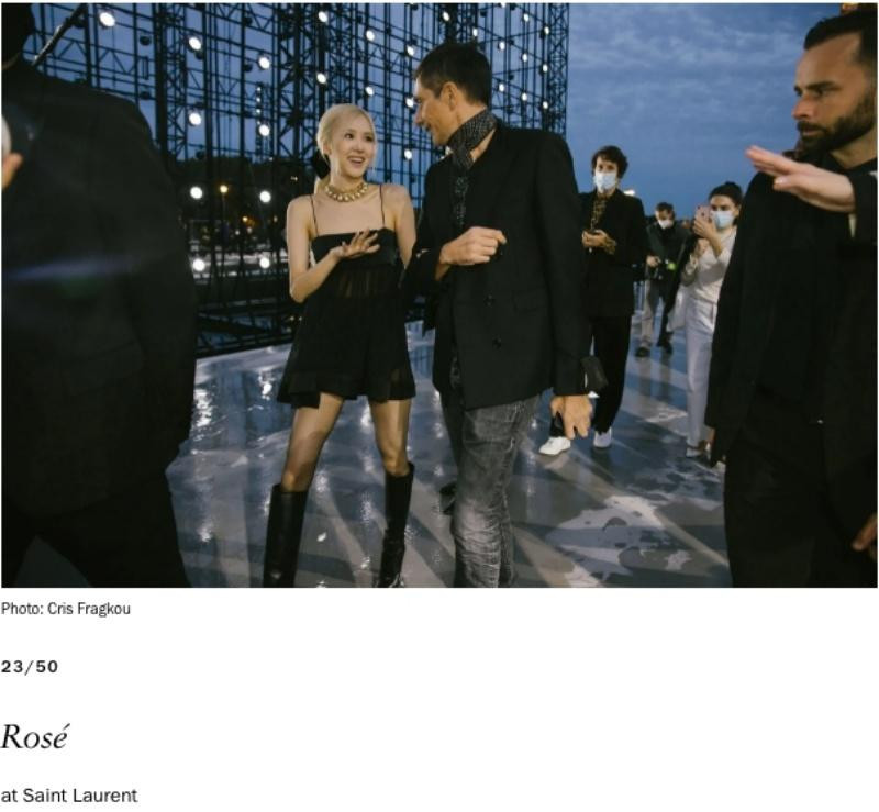 Với Rosé, mặc dù trang phục của cô cũng gây tranh cãi vì được may lại từ hai thiết kế khác nhau của Saint Laurent, nhưng theo đánh giá của VOGUE, Rosé vẫn chiếm được vị trí 23/50 ngôi sao mặc đẹp nhất trên hàng ghế đầu của hai show Dior và Saint Laurent.