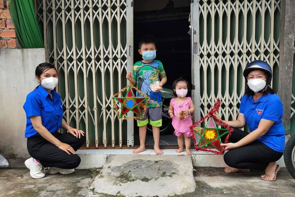 Hàng chục ĐVTN ở Đồng Tháp đã tự tay làm lồng đèn và bánh trung thu để trao tặng cho các em thiếu nhi trong khu phong tỏa, cách ly và trẻ em nghèo, khó khăn vùng sâu vui trung thu.