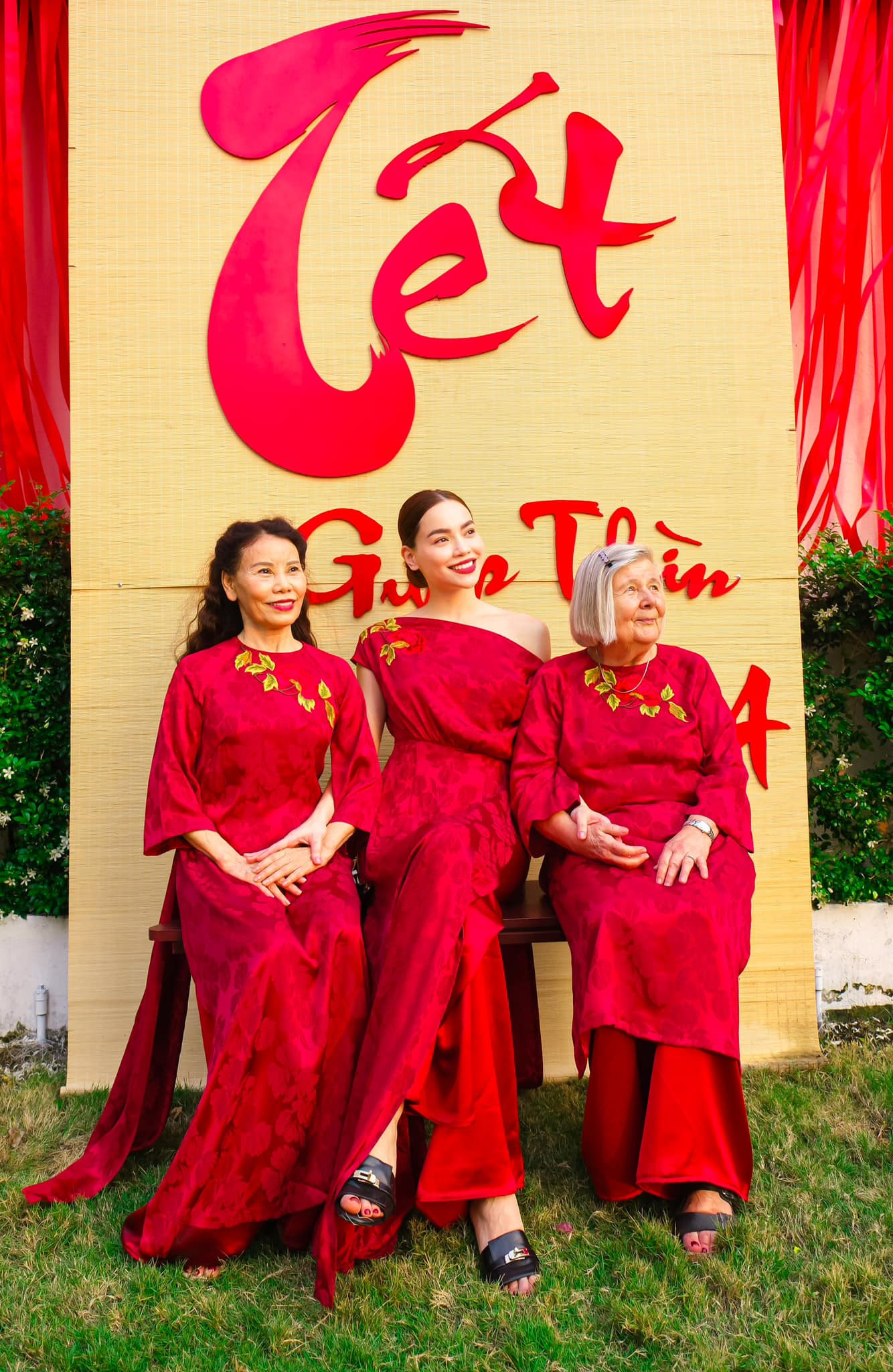 Hồ Ngọc Hà khiến netizen trầm trồ với nhan sắc quý phái, mặn mà trong bộ ảnh Tết cùng gia đình. Thiết kế áo dài đỏ cách tân trễ vai kết hợp cùng kiểu tóc búi thấp khiến "nữ hoàng giải trí" trông vô cùng cuốn hút.