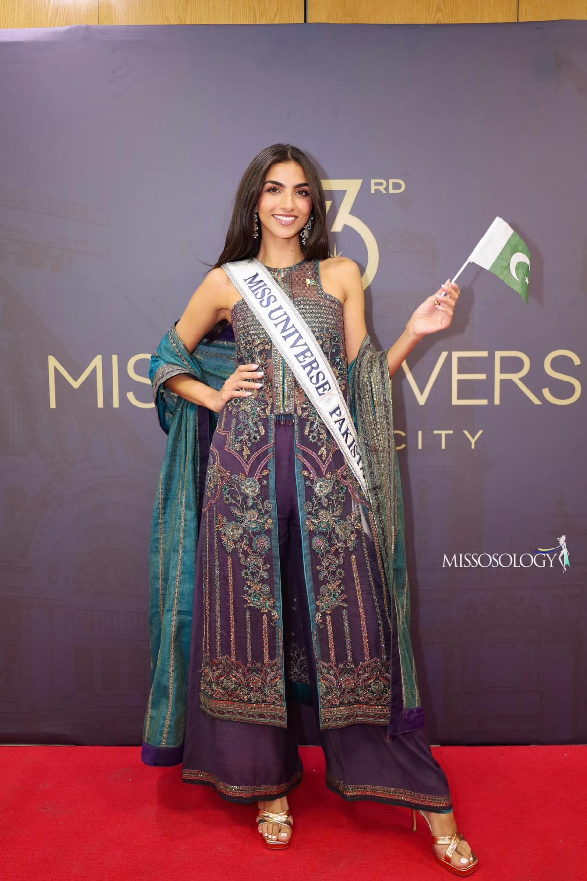 Hoa hậu Kỳ Duyên (váy trắng) đại diện Việt Nam bên cạnh dàn thí sinh Miss Universe 2024.
