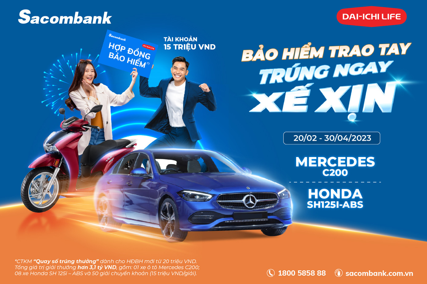 Cơ cấu giải thưởng của chương trình gồm: giải đặc biệt 01 xe ô tô Mercedes C200; 08 giải nhất, mỗi giải một xe Honda SH 125i ABS và 50 giải nhì, mỗi giải trị giá 15 triệu đồng (chuyển trực tiếp vào tài khoản thanh toán Sacombank của khách hàng).