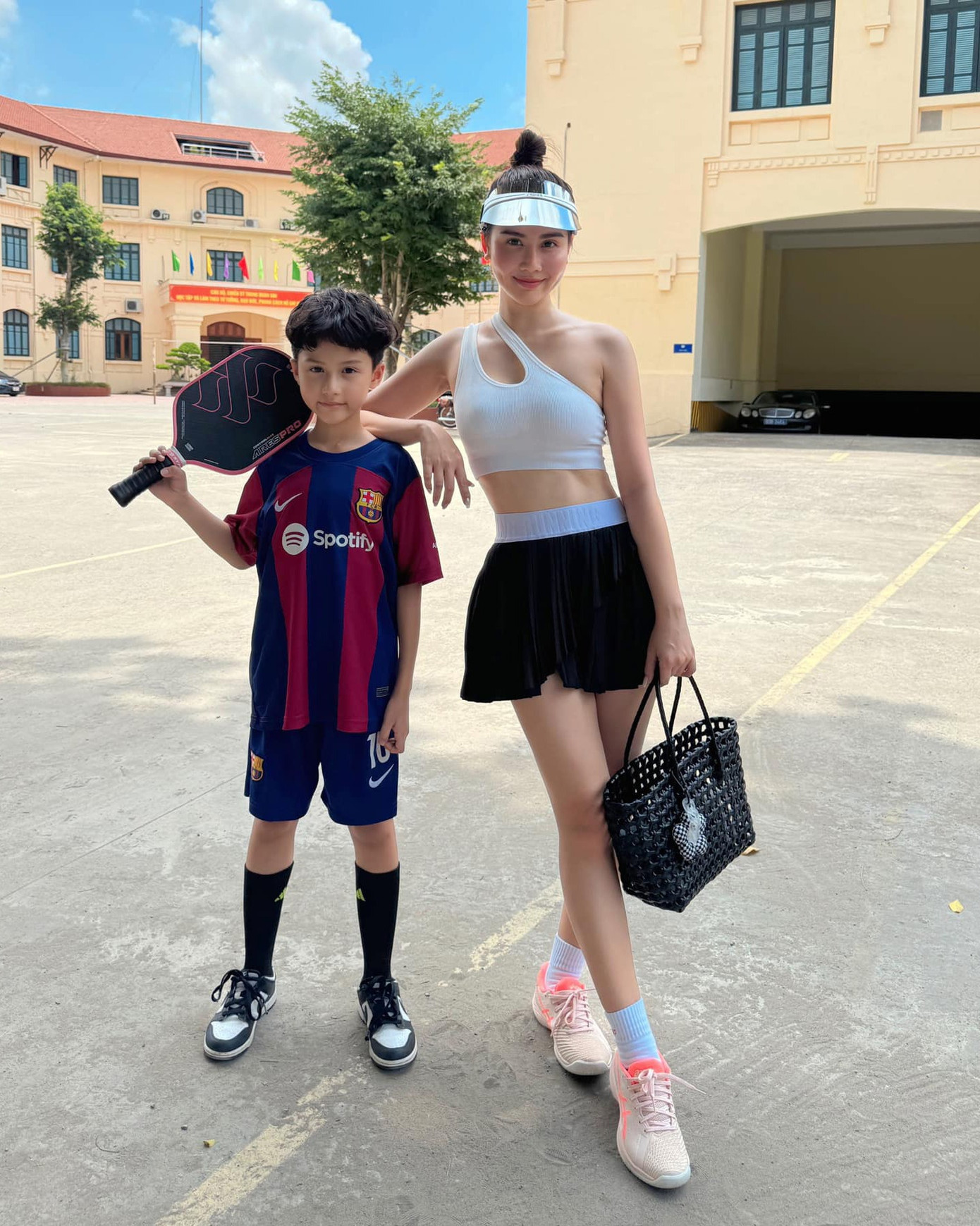 Nhiều diễn viên của phim giờ vàng VTV cũng đã làm quen với pickleball. Mỗi buổi tập, Huyền Lizzie lại khoe sắc trong một thiết kế mới. Nữ diễn viên sở hữu vòng eo nhỏ xíu nên rất thích mặc áo lửng để khoe cơ bụng săn chắc.