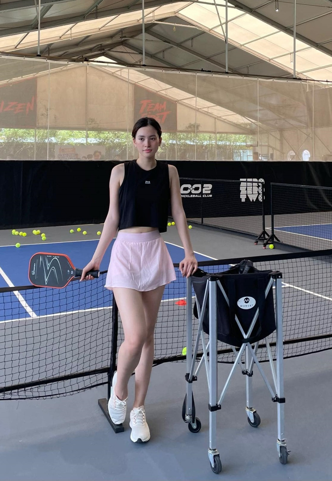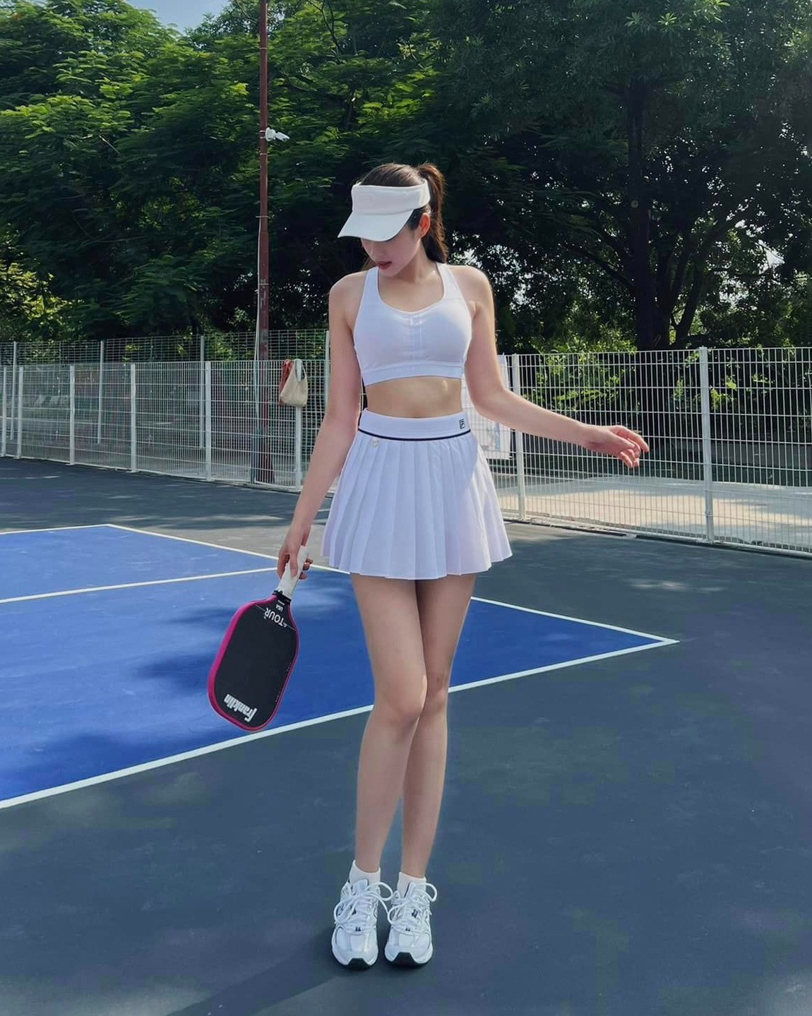 Như Hoa hậu Đỗ Thị Hà đã nhanh chóng sắm sửa nhiều set đồ khi gia nhập bộ môn pickleball. Vốn sở hữu đôi chân đẹp như mơ, nàng hậu xứ Thanh cực kỳ tự tin khi khoe điểm cực phẩm của mình trong những bộ váy siêu ngắn.