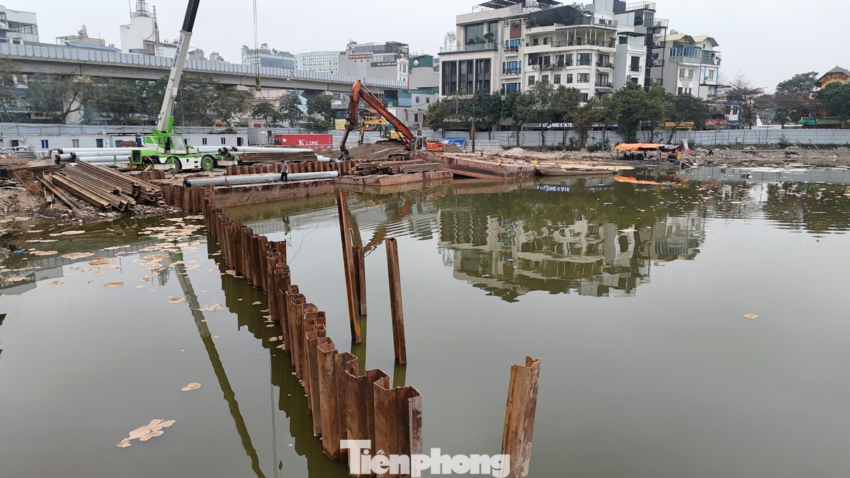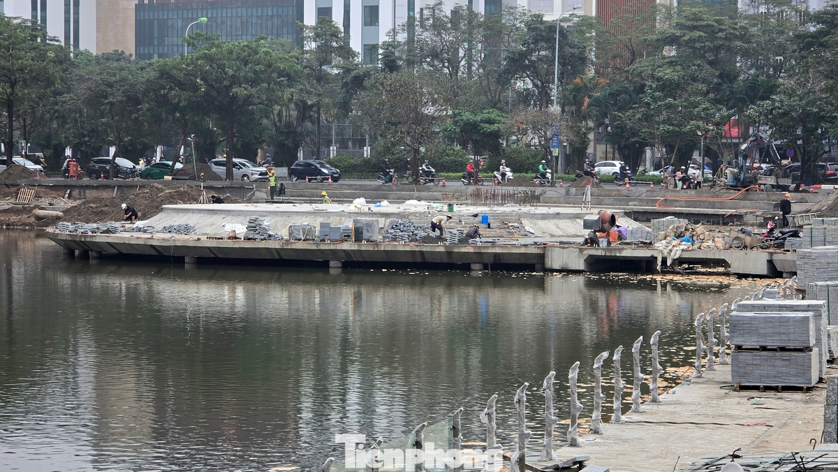 | Dự án cải tạo hồ Đống Đa đã bước vào tháng thi công thứ 8, nhiều hạng mục lớn của dự án dần thành hình hài. |