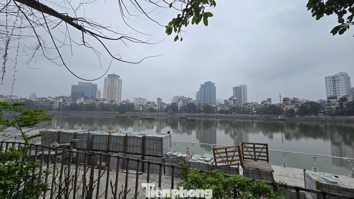 | Vỉa hè ven hồ đang được cải tạo lại. |