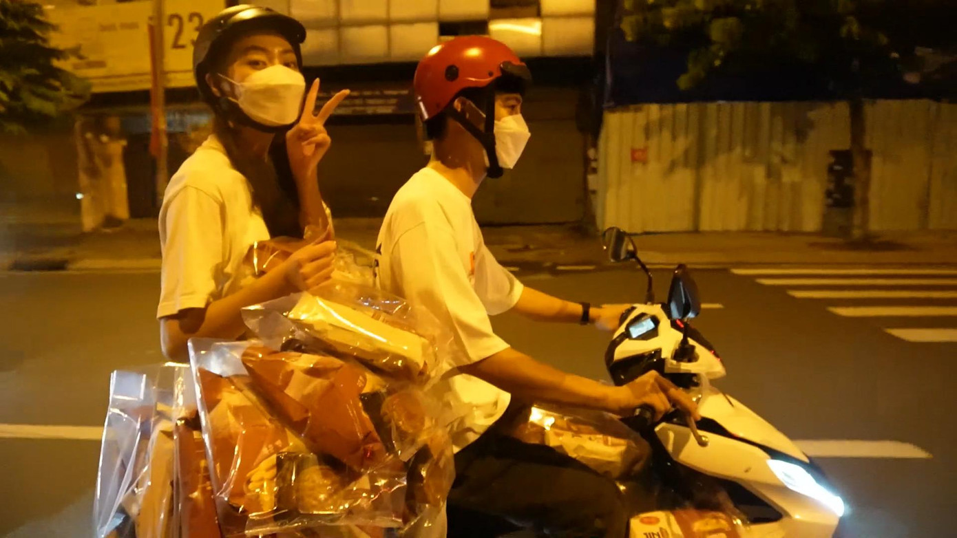 Sau khi hoàn thành, 'nàng Hậu' đã cùng ê kíp đi khắp các tuyến đường của thành phố để trao tặng những người dân và không quên gửi đến họ lời chúc trung thu vui vẻ. Một phần quà gồm một hộp bánh gạo cùng một chiếc bánh trung thu do chính tay cô nàng tự làm.