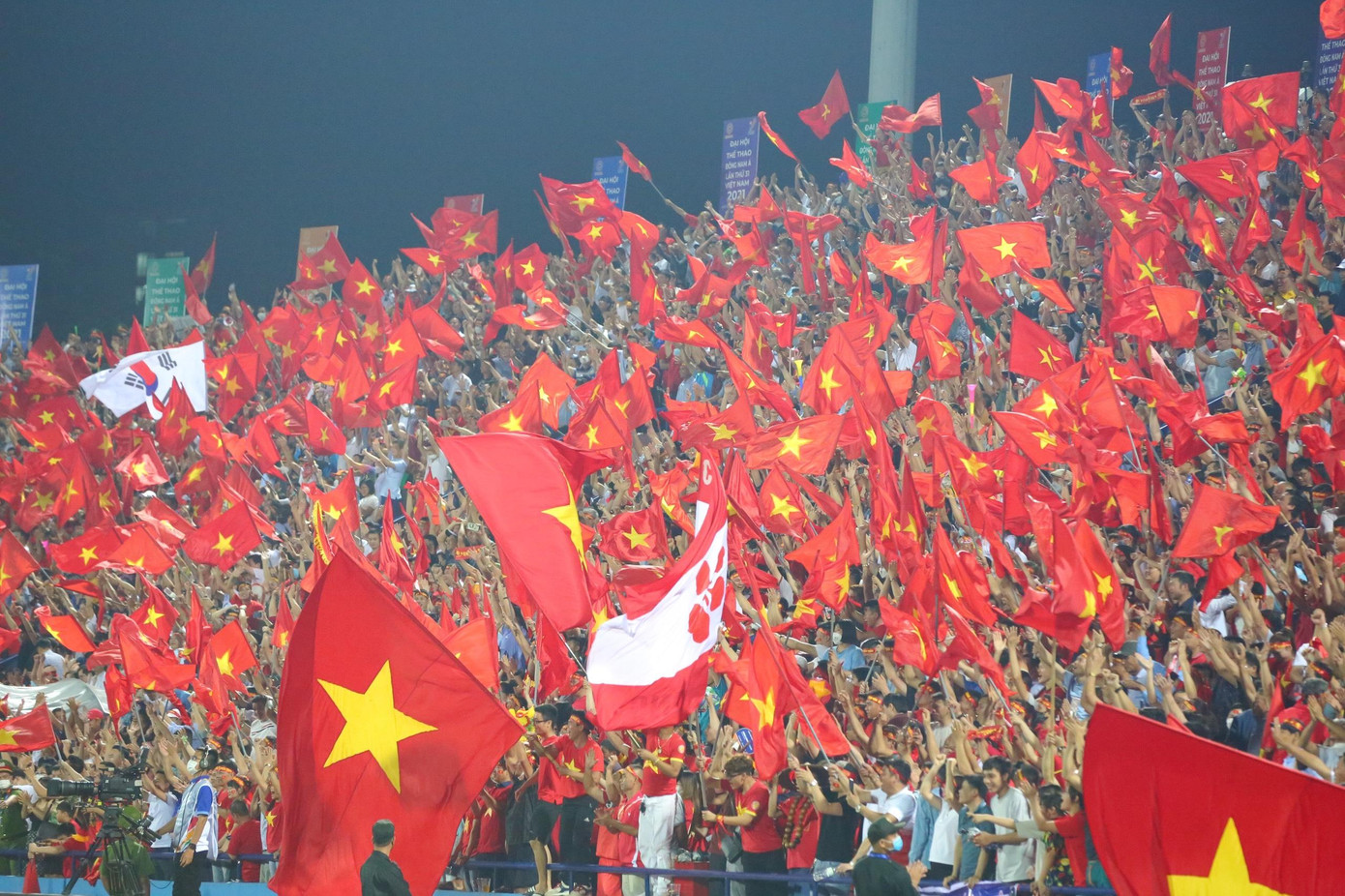 Sắc đỏ rợp sân, từ màu cờ, màu áo của khán giả và cầu thủ.