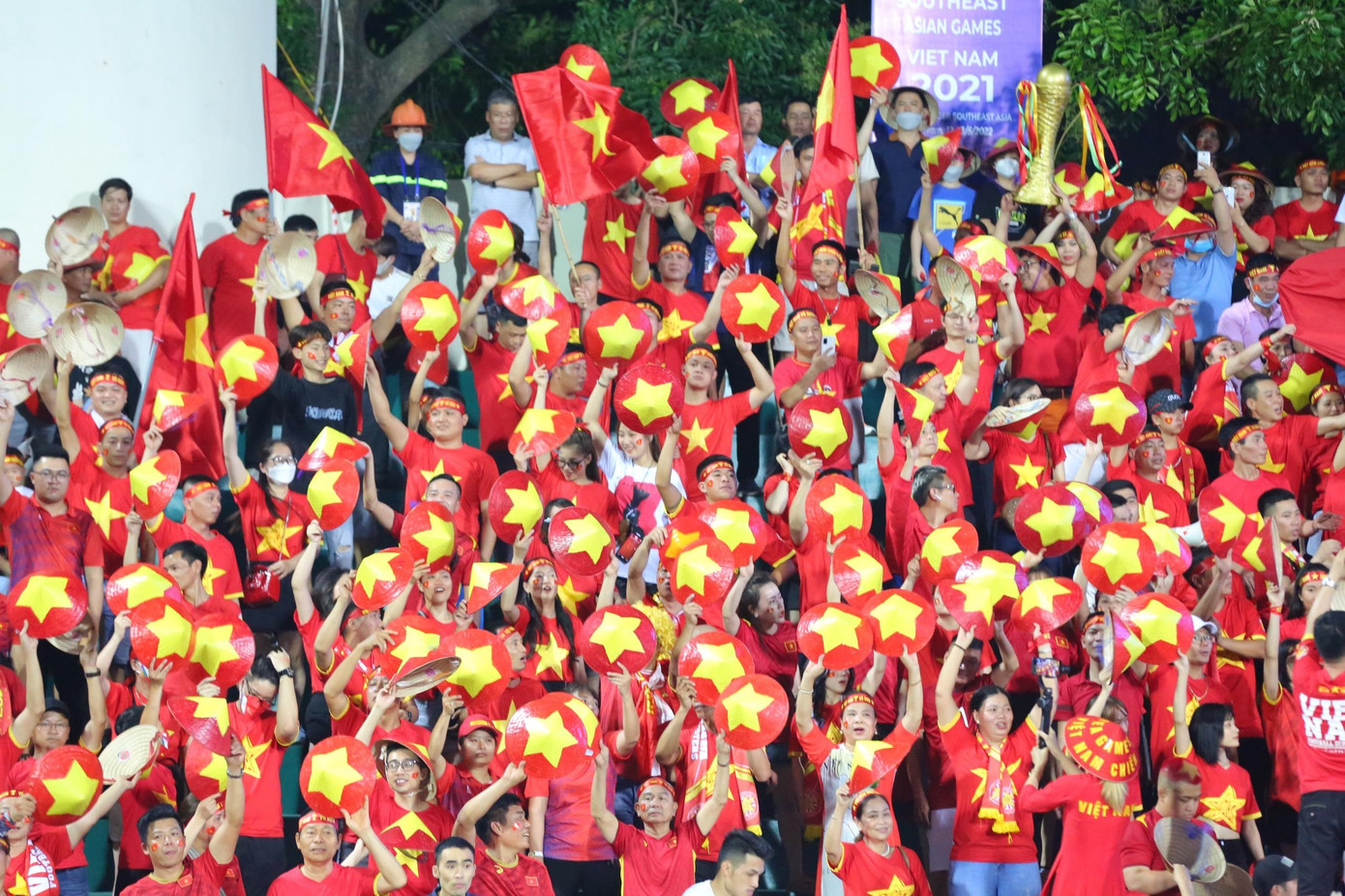 Ít nhất 3.000 lá cờ được phất, và hơn 20.000 khán giả trên sân Việt Trì cùng nhau hò reo...