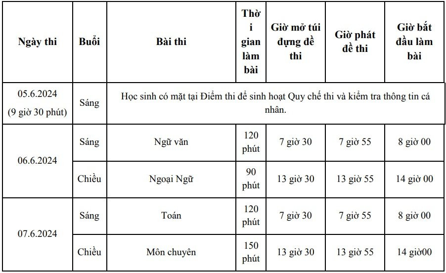 Số thí sinh này sẽ được bố trí dự thi tại 158 điểm thi. Trong đó, có 147 điểm thi vào lớp 10 thường, 11 điểm thi vào lớp 10 chuyên. Tổng số phòng thi là 4.334.