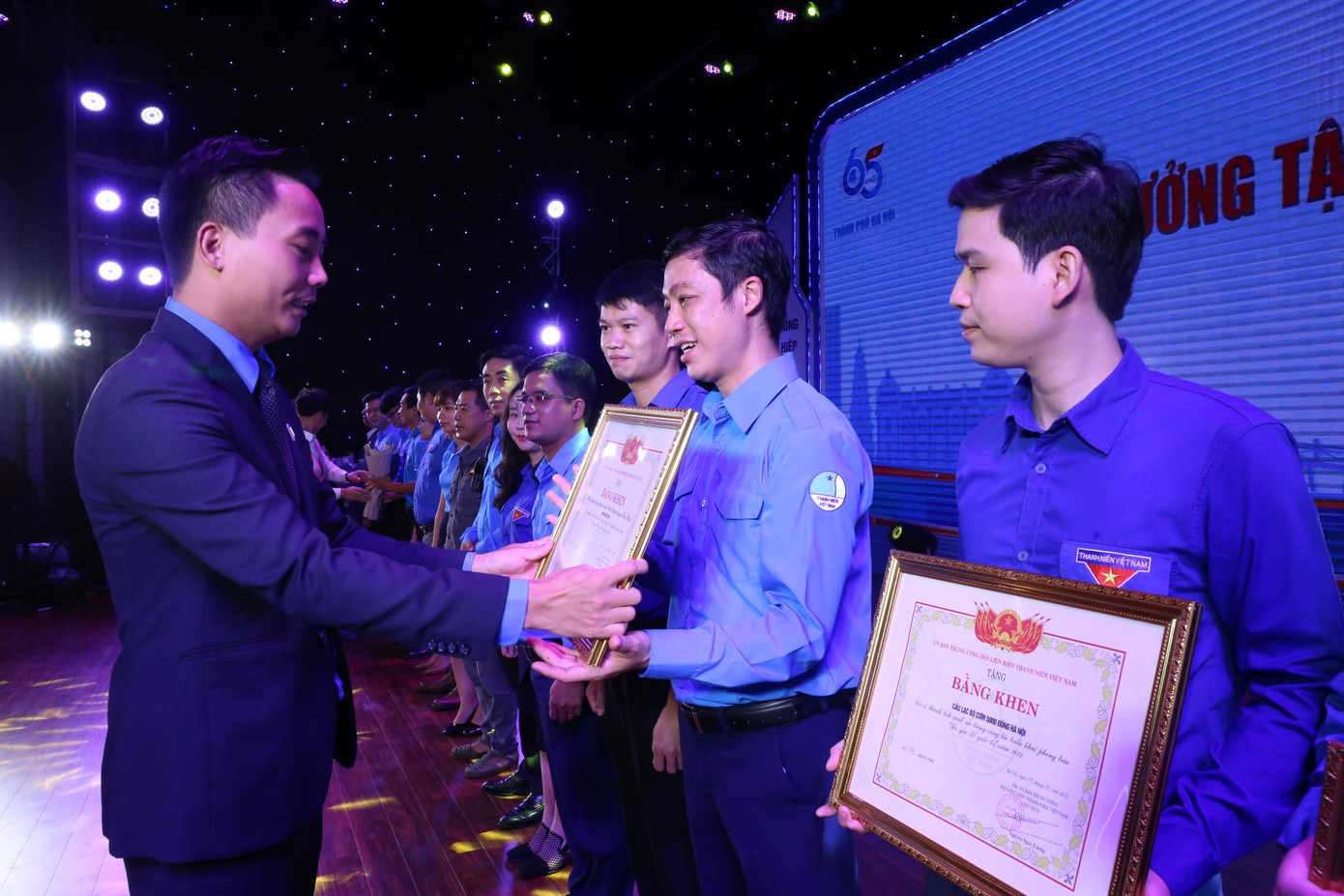 Dịp này, Hội LHTN TP Hà Nội tuyên dương 30 gương Thanh niên sống đẹp cấp Thành phố năm 2021 và 35 tập thể tiêu biểu xuất sắc trong hoạt động hưởng ứng 65 năm Ngày truyền thống Hội.