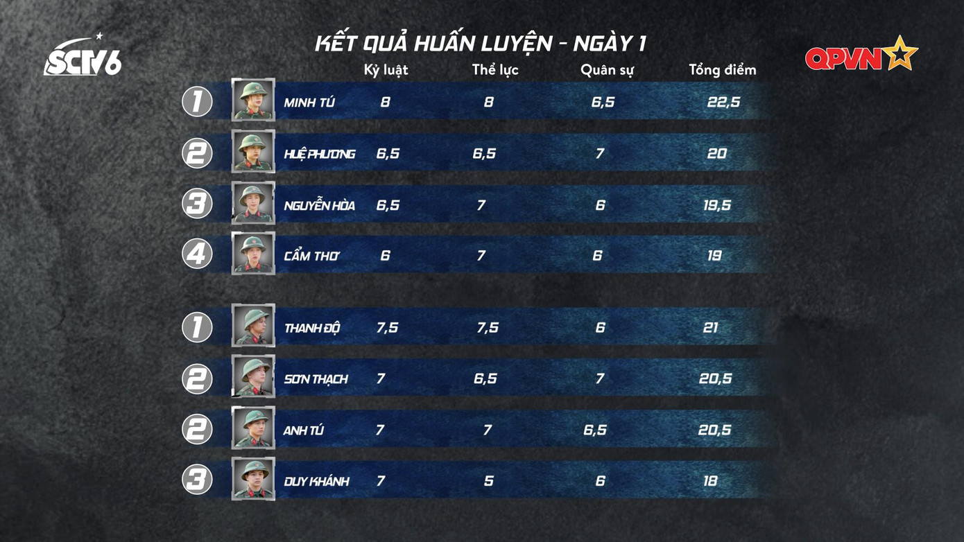 Sau đó, cả Trung đội trở về gấp chăn màn, ăn sáng và kiểm tra nội vụ. Trong bữa cơm sáng, Duy Khánh và Minh Tú hết sức lo lắng vì cả hai cảm nhận như mình chính là "hố đen" của cả đội. Tuy nhiên, Anh Tú đã phủ nhận hoàn toàn, anh cho rằng ai cũng có lần đầu và vì cả 8 người mới chỉ vào đơn vị một ngày nên những ngày sau đó chắc chắn sẽ có cải thiện rõ rệt. Có thêm sự động viên của Anh Tú, Minh Tú - Duy Khánh cũng vơi bớt phần nào nỗi lo lắng.