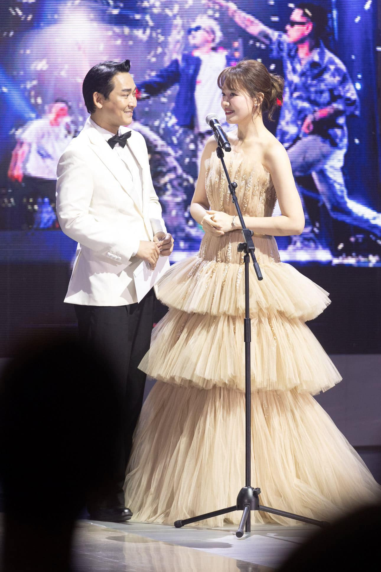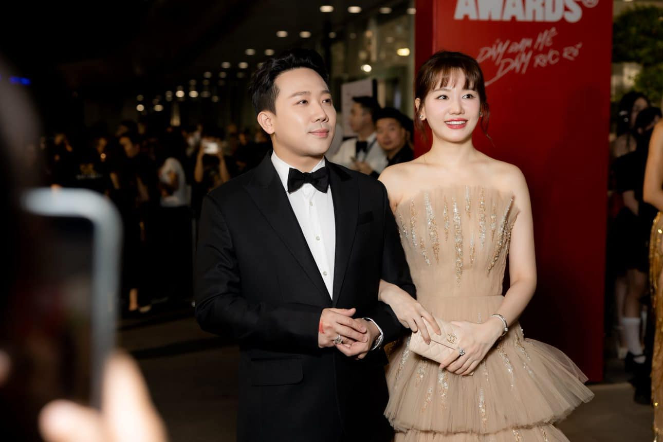 Hari Won sánh vai cùng chồng - MC Trấn Thành tại lễ trao giải WeChoice Awards 2023. Người đẹp 38 tuổi thu hút ánh nhìn với vẻ trẻ trung trong thiết kế cúp ngực 3 tầng của NTK Phan Huy, Thủ khoa Thời trang ĐH Kiến trúc TP.HCM.