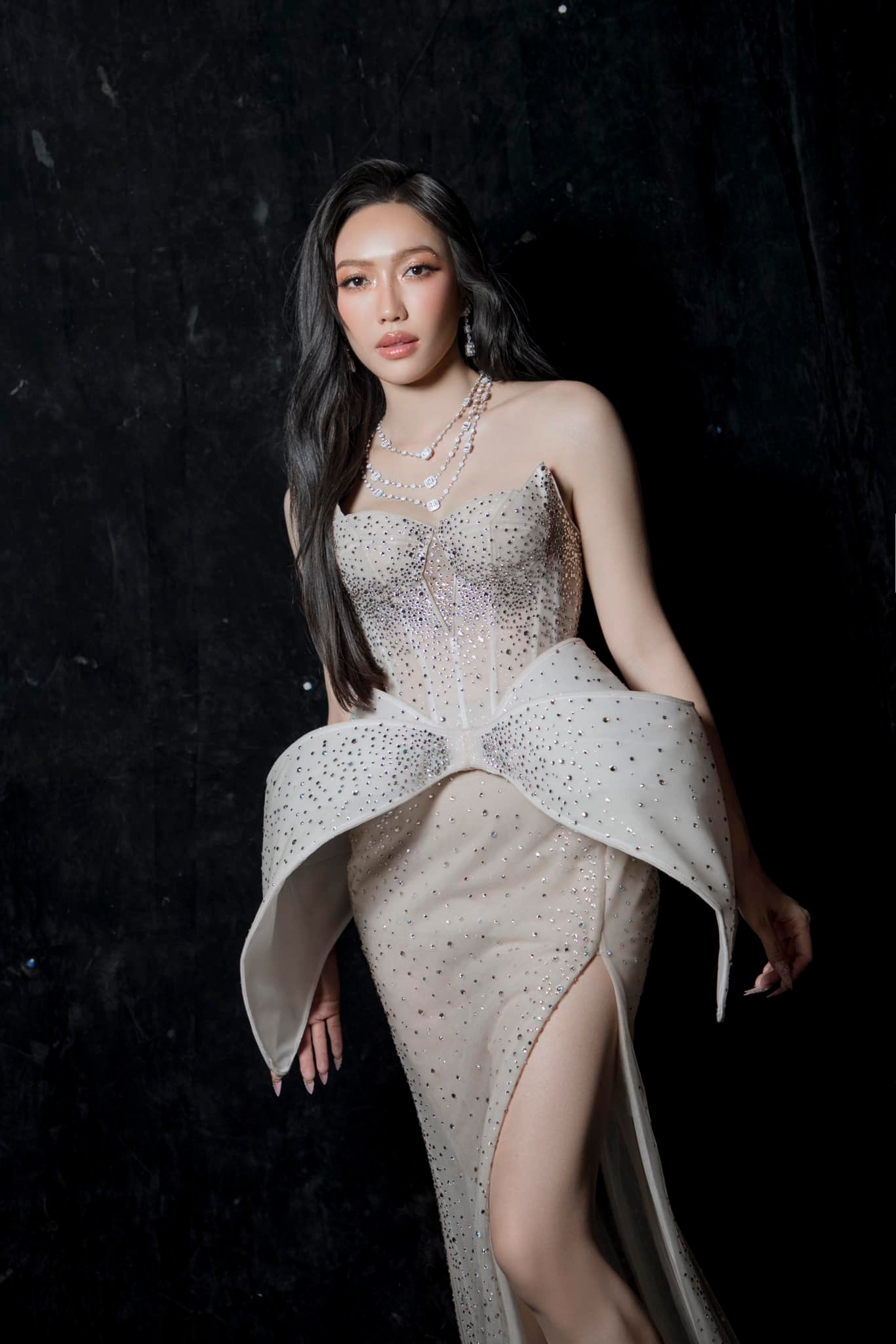 Trước đó, thiết kế đầm lộng lẫy của nhà mốt MIHEN có giá gần 150 triệu này cũng từng được Á hậu Ngọc Thảo diện trong bộ ảnh thời trang cuối tháng 1/2024. Người đẹp sinh năm 2000 khoe vẻ sang trọng, yêu kiều cùng trang sức cao cấp Swarovski.