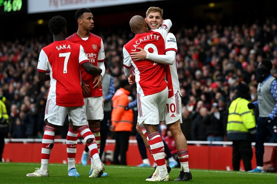 Trong 45 phút đầu tiên, Arsenal kiểm soát bóng áp đảo đến 80,1%. Họ tung ra đến 16 cú sút trúng đích trong hiệp 1 nhưng không một lần thành công. Tuy nhiên, bước ngoặt đã xảy ra chỉ vài phút sau khi hiệp 2 bắt đầu. Lacazette mở bóng cho Smith Rowe ở bên phía cánh trái, cầu thủ 21 tuổi này nhận bóng rồi bó vào trong trước khi tung cú sút hiểm hóc đánh bại thủ môn Raya. Đây là bàn thắng thứ 10 trên mọi đấu trường của cầu thủ này ở mùa giải năm nay.