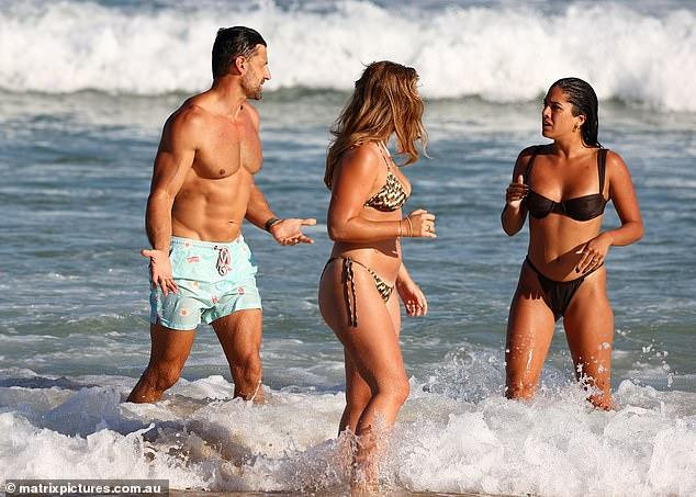 Olivia Junkeer được trông thấy dạo bãi biển với nam diễn viên Tim Robards (SN 1982) và một người bạn nữ.