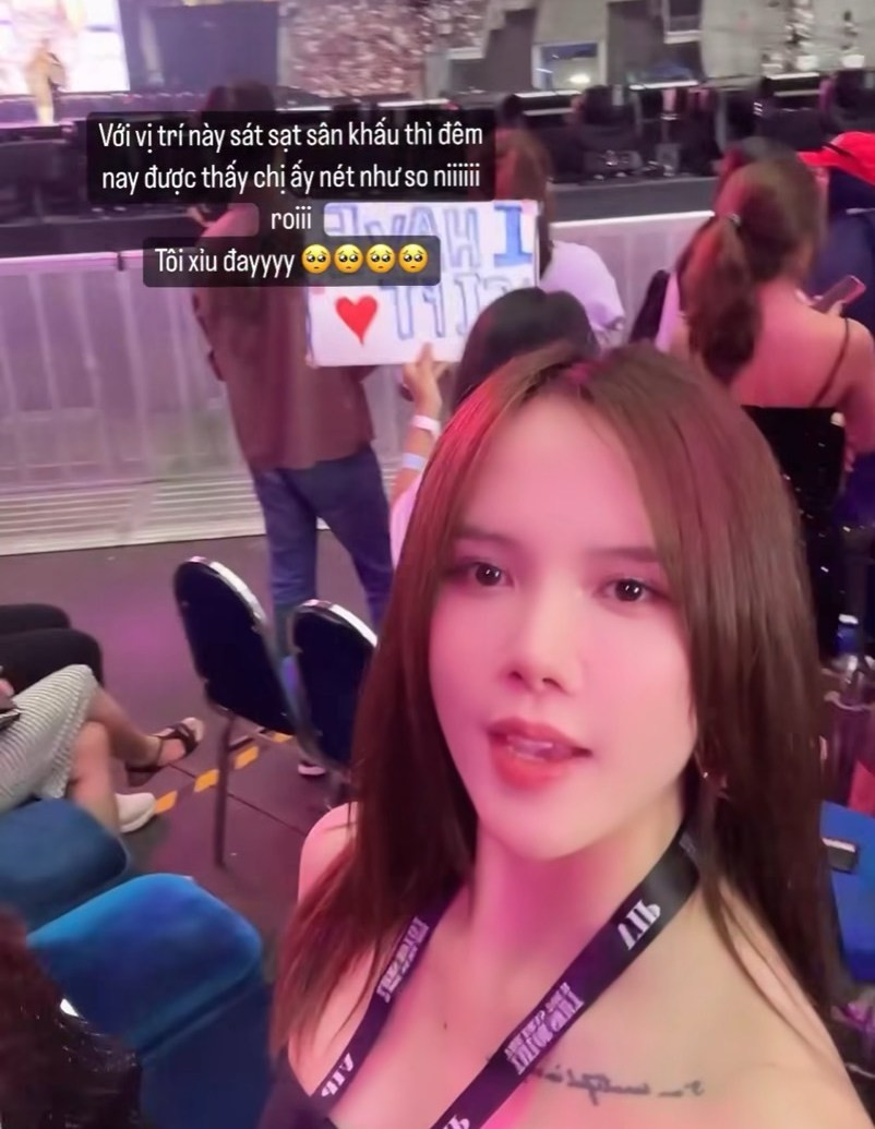 Cặp chị em Thiều Bảo Trâm - Thiều Bảo Trang gây chú ý với nhan sắc tươi tắn tại concert. Hai nữ ca sĩ diện trang phục tông đen, đơn giản thoải mái để tận hưởng âm nhạc. Trong một story được chia sẻ, người hâm mộ trầm trồ với vị trí đứng sát sạt sân khấu để "đu idol" của hai người đẹp.