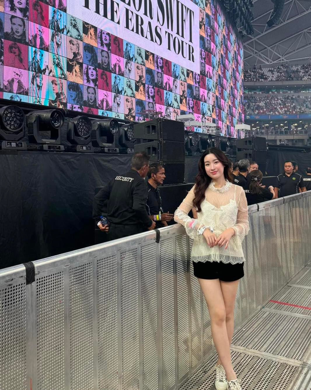 Hoa hậu Đỗ Mỹ Linh được chồng và anh trai chồng "hộ tống" đi xem show Taylor Swift. Người đẹp cho biết đây là trải nghiệm lần đầu tiên đi nước ngoài "đu idol" của cô. Nhan sắc trẻ trung, rạng rỡ của nàng hậu tại The Eras Tour nhận về nhiều lời khen.