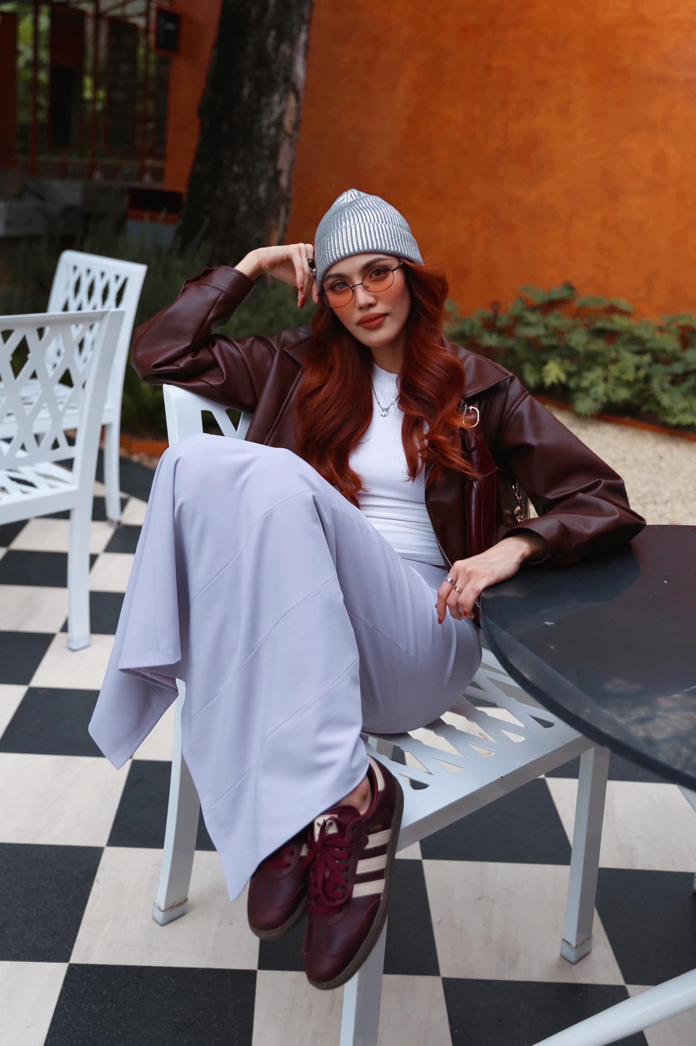 Siêu mẫu Lan Khuê "thả dáng" bên cạnh cây thông Noel khổng lồ trong biệt thư xa hoa. "Nàng dâu hào môn" ghi điểm khi lăng xê tông màu đỏ tía, kiểu phối tất chân nổi bật.