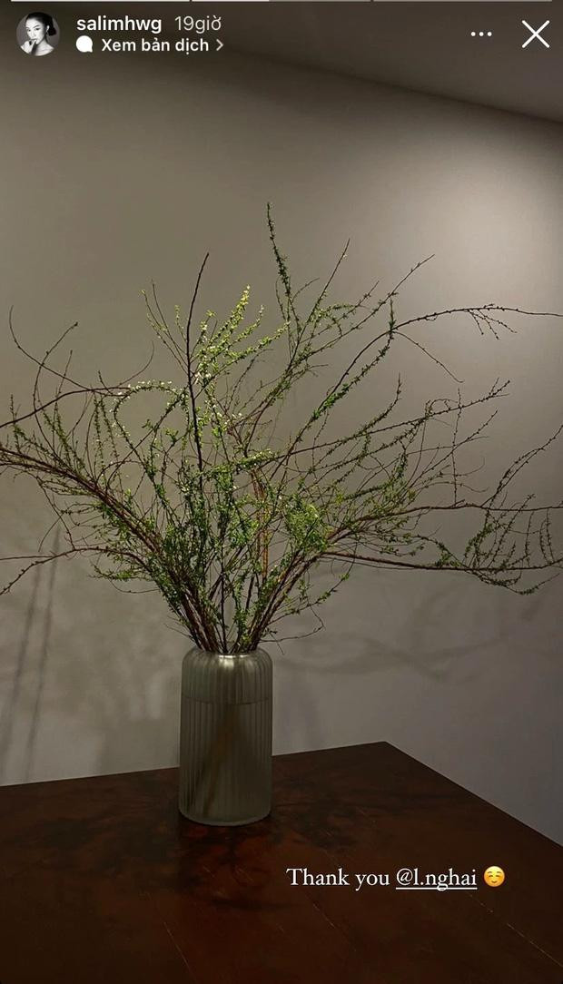 "Team tuyết mai" cũng không hề kém cạnh khi khoe những bình hoa được cắm khéo léo. Salim dành hẳn một chiếc bàn để trưng bày tuyết mai, chỉ cần vài cành thôi là có ngay góc cực nghệ rồi. Từ sau màn cầu hôn của bạn trai thiếu gia, mọi động thái của cô nàng càng được mọi người chú ý hơn.