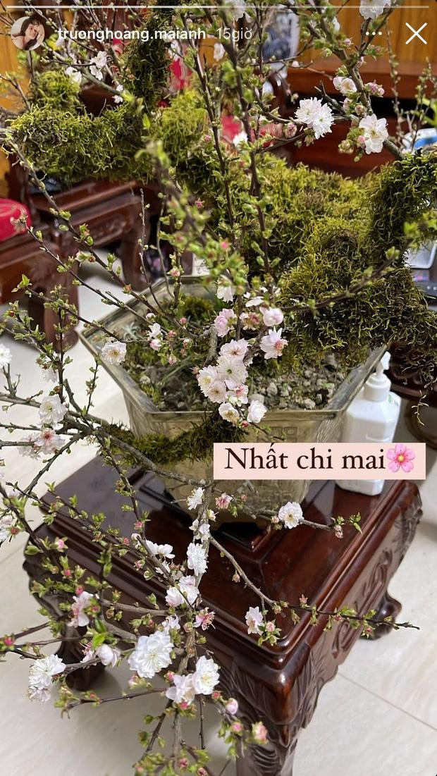 Cặp đôi Trương Hoàng Mai Anh - Jaykii sắm một chậu nhất chi mai để đón Tết. Nhất chi mai vốn thuộc một trong nhóm cây tứ quý: Tùng - cúc - trúc - mai và là loại cây truyền thống vào dịp Tết. Những gia đình quyền quý khi xưa đặc biệt yêu thích nhất chi mai vì vẻ đẹp thanh tao, mang cốt cách của người quân tử.
