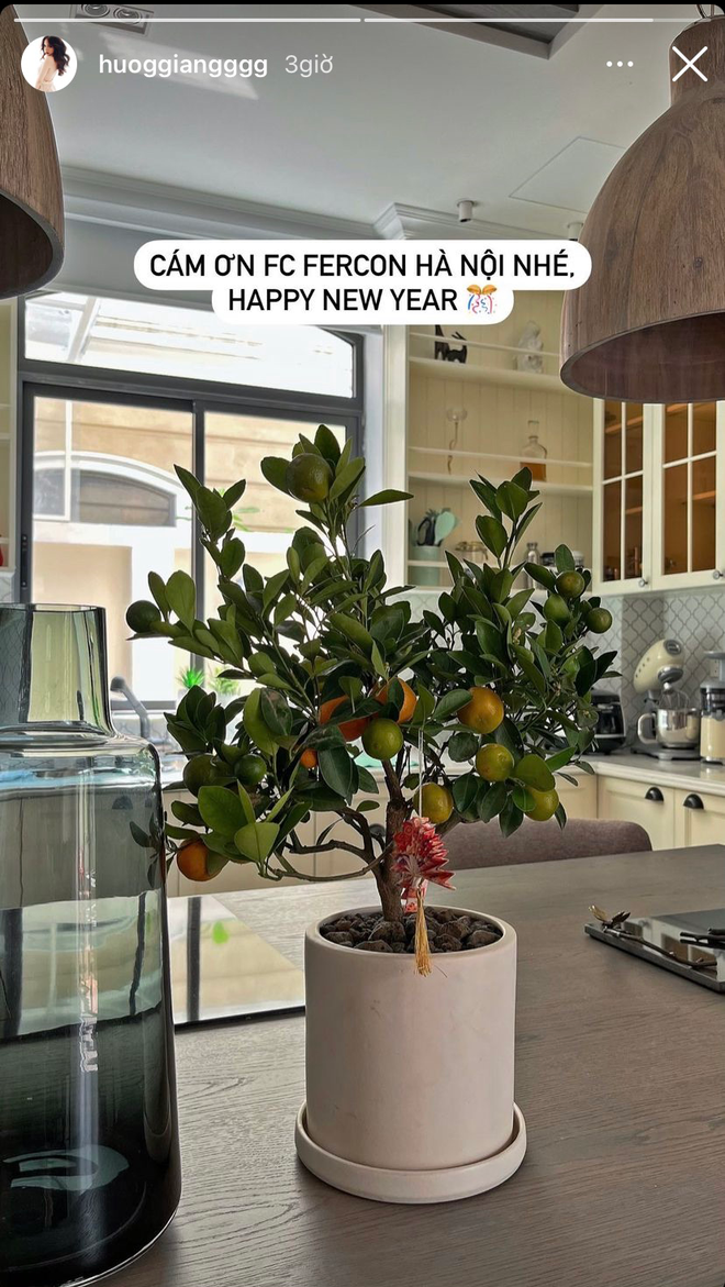 Trái lại, nhà Hoa hậu chuyển giới quốc tế Hương Giang lại rất truyền thống khi trang trí đào, quất đậm hương vị Tết: Quất đặt trong phòng bếp, đào bày trong phòng khách. Đây cũng là năm đầu tiên nàng Hậu đón Tết ở biệt thự mới nên mọi người rất mong chờ xem nhà cửa của cô sẽ được trang hoàng như thế nào.