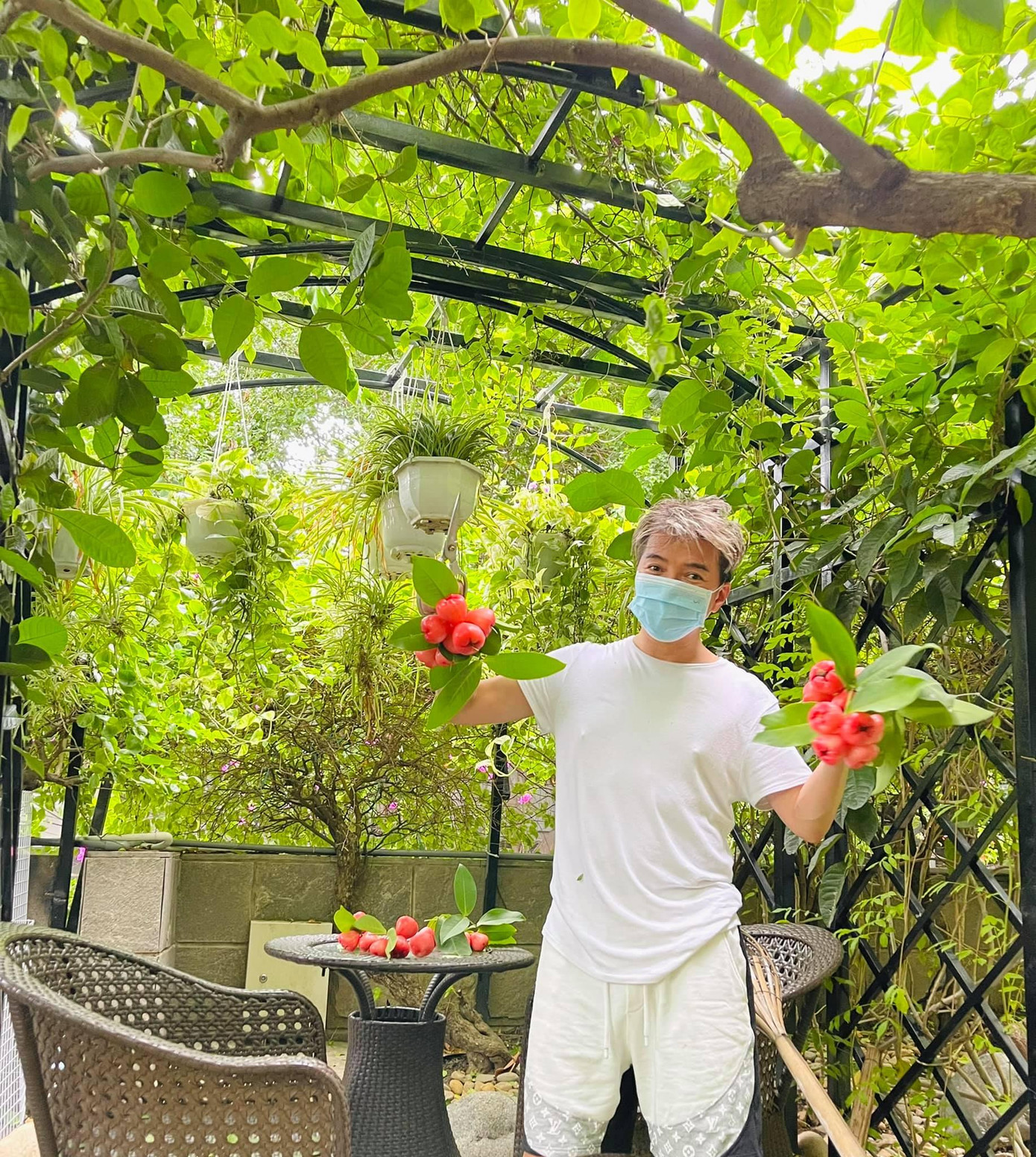 | Đàm Vĩnh hưng có thú vui dân dã mùa dịch. Anh tự tay cắt tỉa vườn cây cảnh, nuôi thêm đàn gà chọi, thỏ trắng ngay trong vườn nhà. |