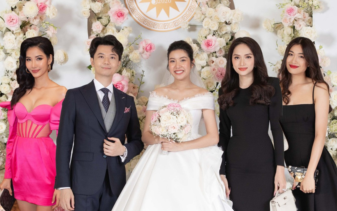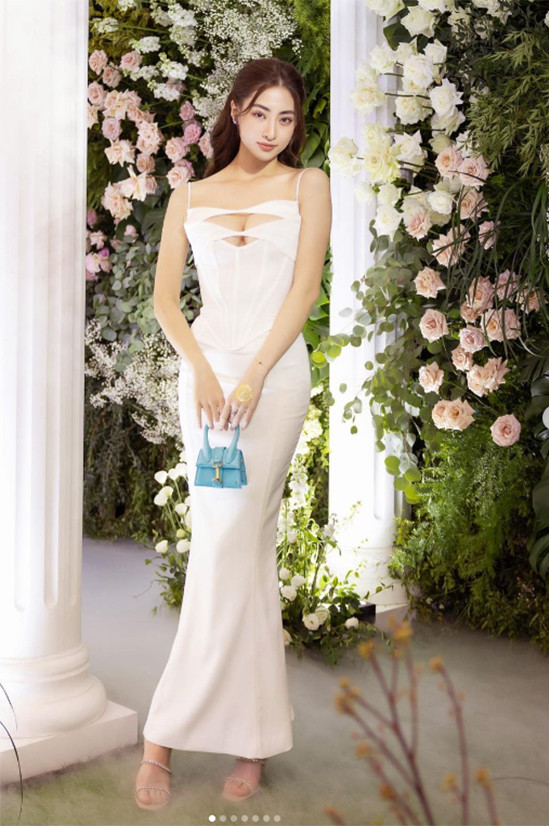 Đám cưới Hoa hậu Đỗ Mỹ Linh quy tụ rất nhiều nàng hậu đình đám tới chúc mừng cô dâu chú rể. Hoa hậu Lương Thùy Linh diện một bộ váy trắng ôm sát khoe thân hình mảnh mai, với điểm nhấn là những khoảng hở khá táo bạo. Nhiều người đã cho rằng thiết kế này hợp để đi chơi tối hoặc đi sự kiện hơn là dự đám cưới, nơi vẫn ưu tiên cho trang phục đẹp và thanh lịch.