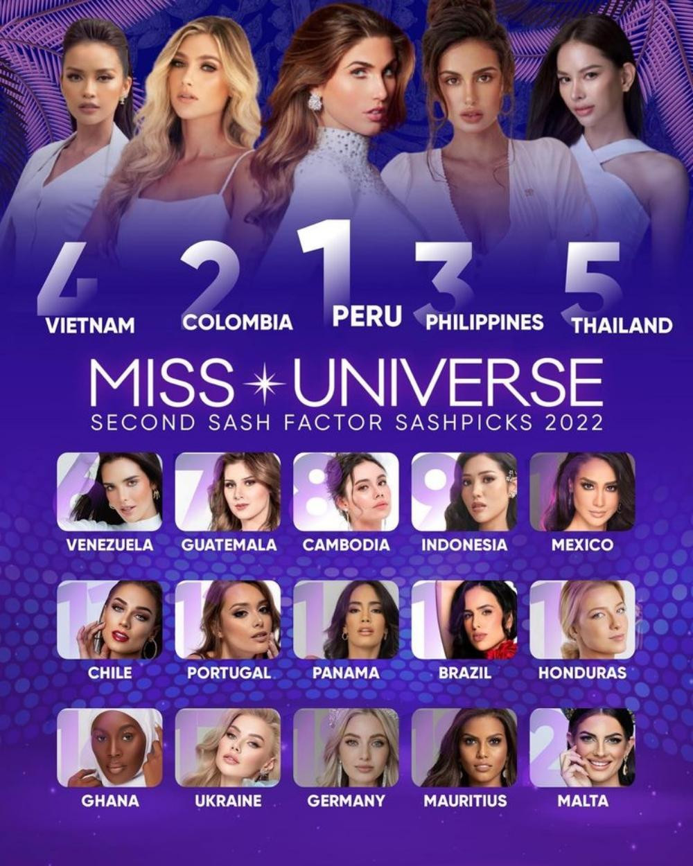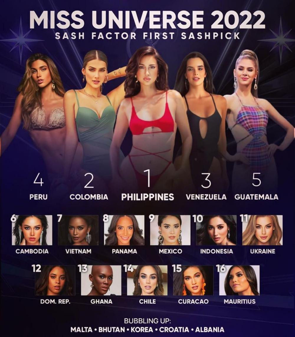 Mặc dù đấu trường nhan sắc Miss Universe 2022 đã được thông báo là hoãn tổ chức tới tận Quý I của năm 2023. Thế nhưng, chuyên trang sắc đẹp quốc tế Sash Factor mới đây vẫn tung BXH dự đoán lần thứ 3 cho cuộc thi này.