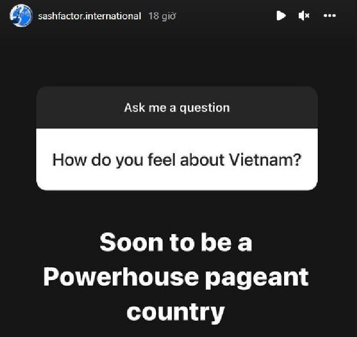 Khi được hỏi về vị trí của Việt Nam trên đấu trường nhan sắc quốc tế hiện tại và tương lai, Sash Factor đánh giá Việt Nam sẽ là một đất nước mạnh về nhan sắc trong tương lai gần.