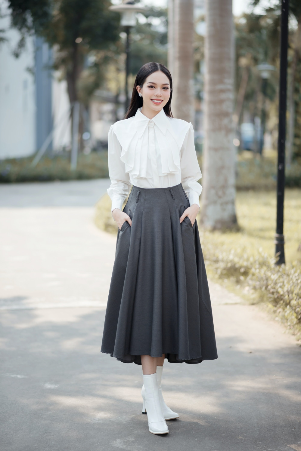 Với set trang phục này, nàng hậu đã có tới vài bộ ảnh khác nhau và bộ ảnh nào cũng được khen hết lời.