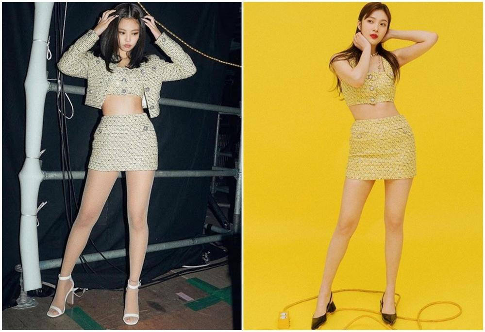 Trước màn đụng hàng này, Joy đã nhiều lần vô tình diện trùng đồ với Jennie. Cả hai nữ idol đều khoe được thân hình có tỷ lệ cực chuẩn trong set đồ gồm áo crop-top và chân váy ngắn ôm sát như thế này.