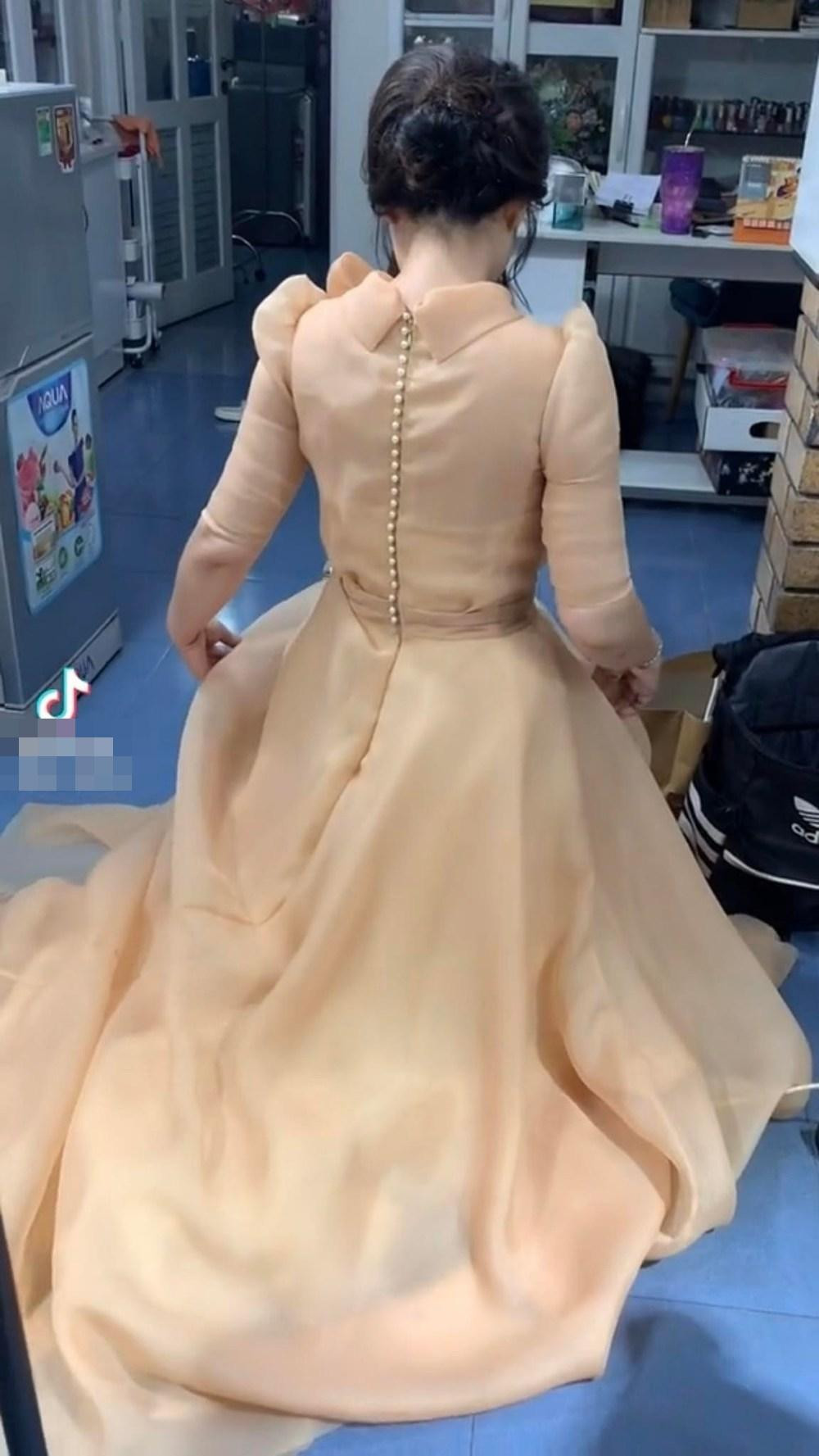 Nhưng vì váy khá chật, bó sát nên cô không thể cởi ra được dễ dàng và buộc phải tìm cách ngồi bệt để trợ lý là (ủi) thân váy. Rất may đây là thiết kế váy xòe nên người khác có thể ủi được mà không ảnh hưởng đến người mặc. Bản thân Ngọc Lan thì than phiền rằng sau sự kiện, có lẽ cô phải thay trang phục bằng cách cắt luôn chiếc váy vì quá chật.