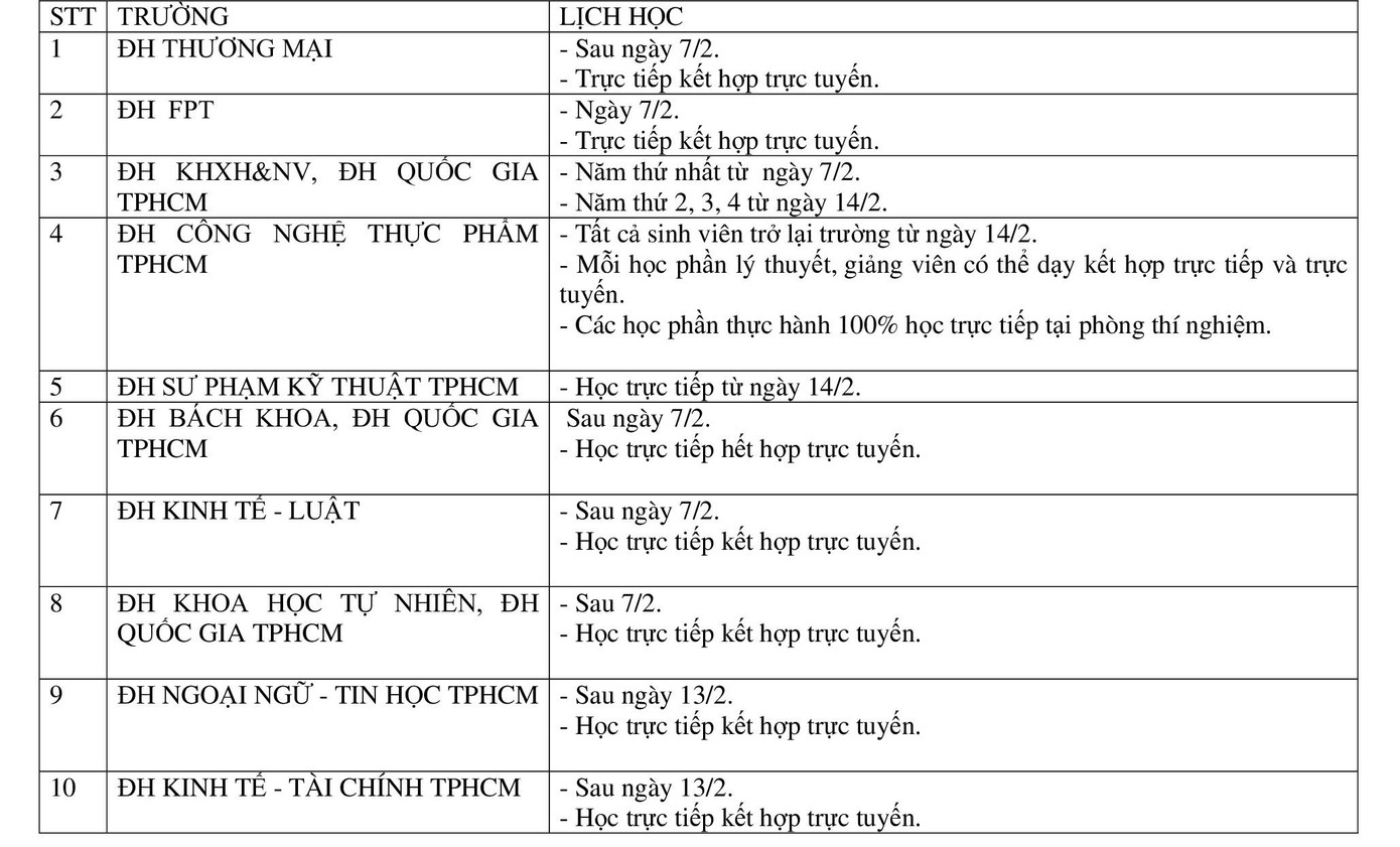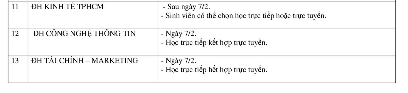 Để học tiếp các trường đều yêu cầu giảng viên, nhân viên, sinh viên phải tiêm ít nhất một liều vắc xin phòng COVID-19 sau 14 ngày hoặc F0 đã khỏi bệnh, người thuộc diện chỉ định không thể tiêm vắc xin thì phải có giấy xác nhận của bệnh viện.
