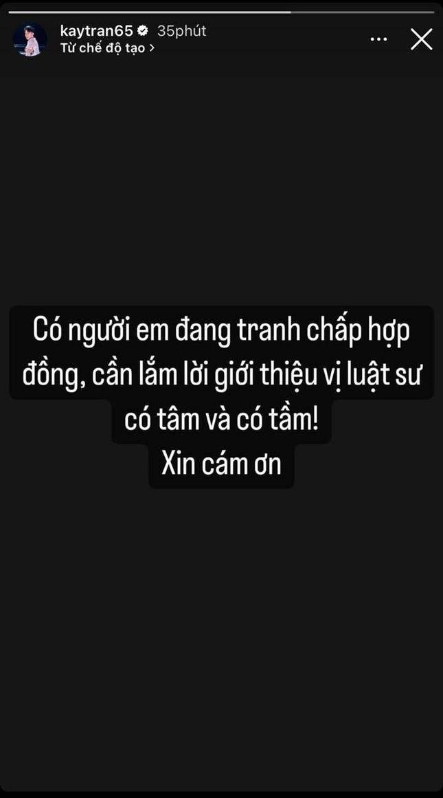 Trước khi chính thức xác nhận hết hạn hợp đồng, Kay Trần và phía công ty M-TP Entertainment liên tục vấp phải nghi vấn "cơm không lành, canh không ngọt". Cụ thể, nam ca sĩ đã đăng Story Instagram cá nhân với nội dung: "Có người em đang tranh chấp hợp đồng, cần lắm lời giới thiệu vị luật sư có tâm và có tầm. Xin cảm ơn!". Một số netizen đã đặt nghi vấn Kay Trần đang tìm luật sư cho chính mình chứ không hề có "người em" nào ở đây cả.