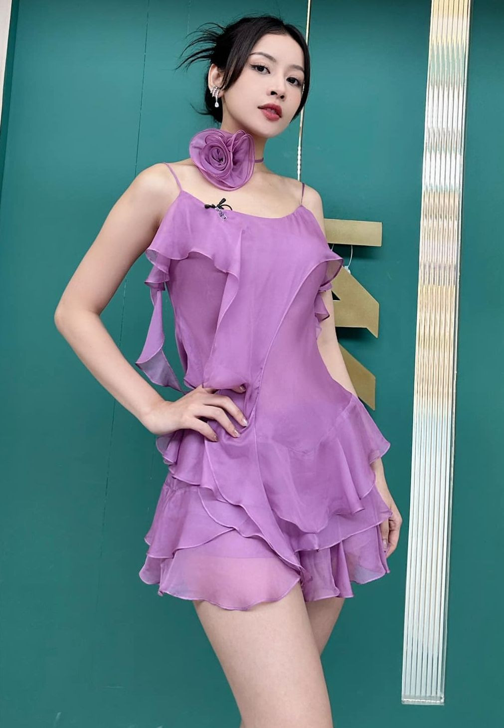 Sau Shuhua, Chi Pu cũng chọn chiếc váy này là một trong 12 trang phục tham gia hoạt động ở giai đoạn công diễn 3 của Đạp Gió 2023. Stylist của Chi Pu cũng biến hoa cài thành choker, nhưng đeo ngược bên với Shuhua. Phần dây bèo nhún vắt chéo từ dây váy xuống thân váy cũng được bỏ đi.