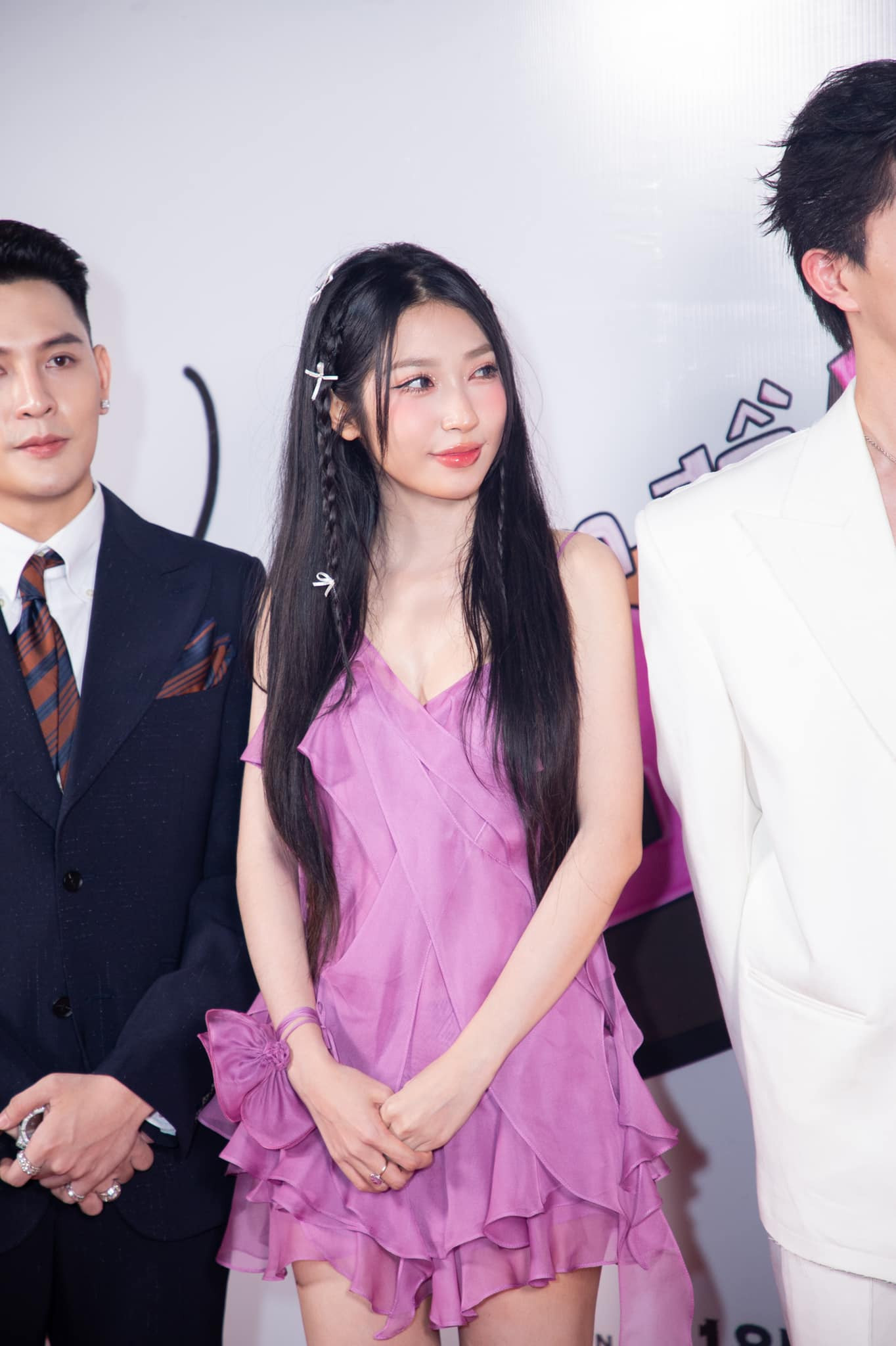 Tham gia một buổi công bố ra mắt dự án phim mới, Khổng Tú Quỳnh cũng chọn chiếc váy của BUPBES đến sự kiện. Chiếc hoa cài dây áo một lần nữa được tái thiết kế, lần này là trở thành một chiếc vòng đeo tay cho Khổng Tú Quỳnh. Nữ ca sĩ được phối đồ cùng đôi giày cao gót màu tím. Mái tóc xõa dài, tết lọn nhỏ đính ruy băng làm tăng độ nữ tính, dịu dàng của cô.