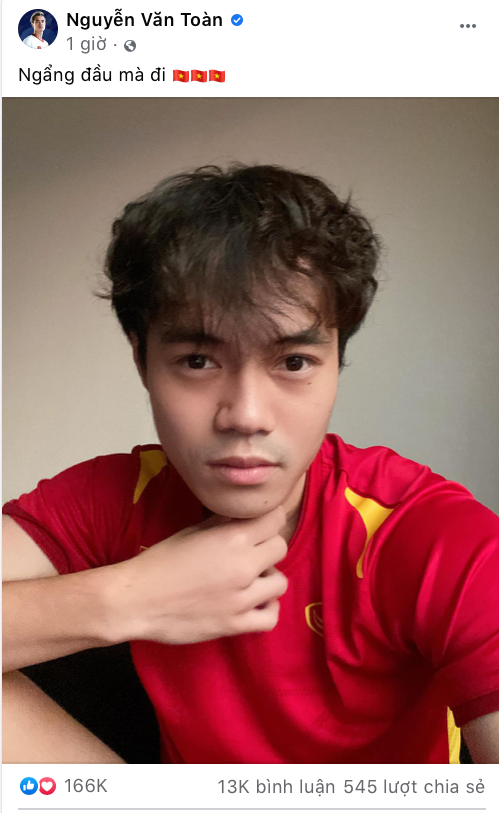 Ngay khi trận đấu vừa kết thúc, cầu thủ Văn Toàn đã đăng một bức ảnh lên trang cá nhân kèm theo dòng trạng thái: "Ngẩng đầu mà đi". Có vẻ như đây là thông điệp mà cầu thủ người Hải Dương muốn nhắn nhủ tới các đồng đội và cũng là lời động viên dành cho chính mình.