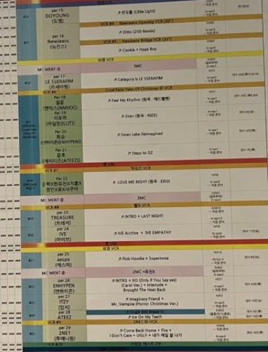 Ngay sau khi phần thảm đỏ kết thúc, trên mạng xã hội bắt đầu lan truyền danh sách được cho là setlist của SBS Gayo Daejeon 2024. G-Dragon sẽ diễn kết show với Power, Sober và Crooked. 2NE1 sẽ đem tới "liên hoàn hit" Come Back Home, Fire, I Don’t Care, UGLY, I Am The Best. Nhóm sẽ diễn ở phần giữa của đêm nhạc. Hiện danh sách này chỉ là tin đồn.