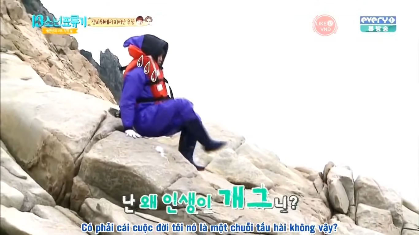 Mặt khác, nếu nhắc đến “độ mặn mà” của SEVENTEEN thì chắc chắn không thể không nhắc đến Seungkwan. Bởi dường như sự hài hước đã "nằm sâu trong máu" khiến cuộc đời của Seungkwan trở nên “đẫm nước mắt” vì… cười quá nhiều. Mất 20 phút thổi bóng để chơi bóng chuyền với DK nhưng chơi chưa nổi 2 phút, chính anh chàng là người đánh quả bóng lên mái nhà không lấy xuống được. Cùng đi lên một bãi đá để bắt bào ngư, nếu Vernon thong thả bước đi thì Seungkwan lại chật vật đi bằng cả tay lẫn chân, đến nỗi phải thốt lên: “Sao cuộc đời tôi là một chuỗi tấu hài vậy?”.