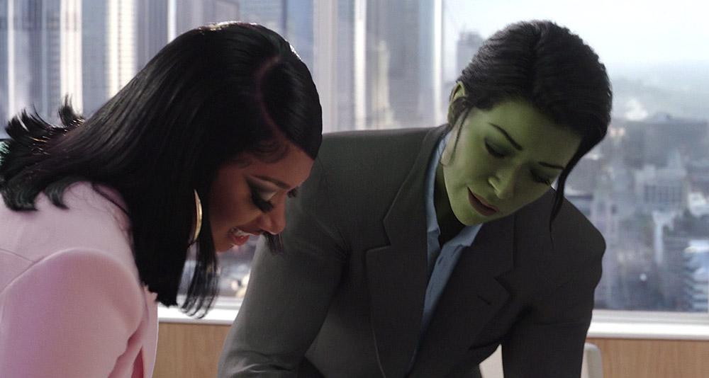Đặc biệt hơn, khách mời lần này của MCU chính là rapper Megan Thee Stallion. Tại vũ trụ MCU, chủ nhân của bản hit Savage đình đám đã bị yêu tinh biến hình Runa - một người Asgard nhập cư Trái Đất - giả dạng để đi “đào mỏ” gã luật sư Dennis Bukowsky - đồng nghiệp cũ của Jennifer Walters. Sau khi Runa bị khởi tố, ả đã thua kiện vì She-Hulk trợ giúp làm chứng, khiến Megan vô cùng phấn khởi, thậm chí còn ký hợp đồng làm việc cùng nữ luật sư da xanh.